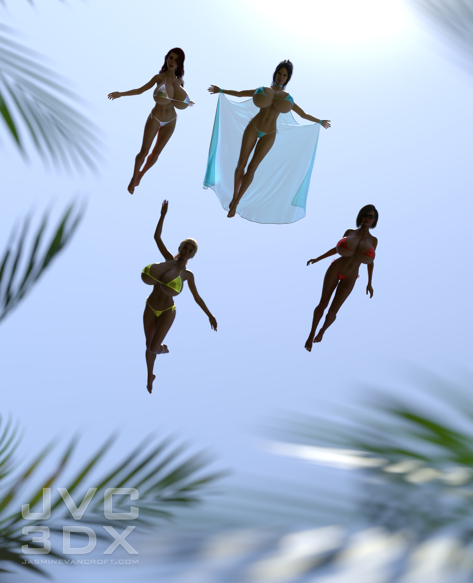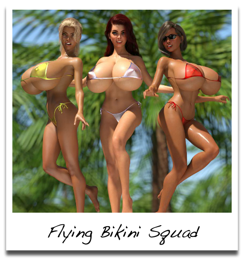 It's the Flying Bikini Squad! Taken from the pages of Episode 38: Rise To Power is something extra you might have missed. If you haven't read this episode, that's okay. You can still ignore the photoshoot Isabella enjoyed with three of her super-breasted, ultra-hot friends who can also fly!
