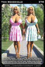 A lowly secretary who was abused by her job and her husband was given a new offer as a god by Nika and Hannah, a offer she was not about to refuse. Instantly equipped with infinite power at her fingertips (including but not limited to the ability to fly, travel anywhere in the world in a zip of light, and read the minds of anyone in the world at any time), Vanessa faked her death so she could escape her old job, horrible husband, and her religious parents so she could finally be what she knew she was: a lesbian. Able to do as she pleased, Vanessa created a new body for herself which no one from her past life would recognize and began using her new powers to give herself more power in the business world. Through careful manipulation, Vanessa harnessed the stock markets, made herself millions upon millions, and then went to work crushing the cruel corporate world one horrible business at a time. Now insanely rich and fabulously famous, yet well aware of the fact that she must hide her supernatural powers from the public, Vanessa lives a public life a glamorous tycoon who longs to clean up the corporate world and surround herself with beautiful women (both real women and women she might have just snapped into existence for fun).