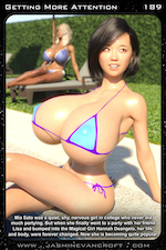 Yet unlike many of Hannah's lovers who get merely get sexy boosts in breast size and beauty, Mia became something of an experiment in the eyes of the teenage god. Hannah seemed to go all out on the sexual enhancements of the timid babe, giving Mia a body even more outrageous than her own. With far larger breasts and a far tighter stomach than even God herself, Mia quickly fell in love with the side effects that came with having sex with Hannah and started to forget about her studies. Encouraged by Sabrina, Mia started posting sexy pics of her new body on the internet for the world to enjoy, sending Mia skyward towards a celebrity status she simply was not prepared for. Yet despite the fact that now every man on campus begged for the sensationally sex Mia to be their girlfriend thanks to her fabulous new body, Mia prayed for Hannah to return to her and be her lover, wishing that Hannah would appear before her and make love to her yet again. The poor girl was forever corrupted by sex with the gods, wondering if one day she would get to become one as well.